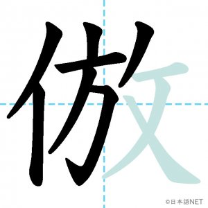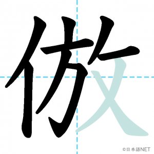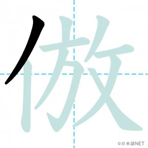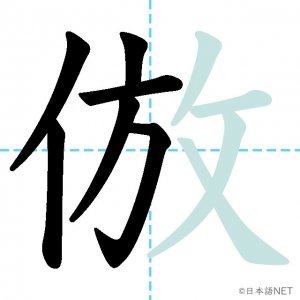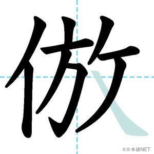N1 漢字漢字【JLPT N1漢字】「倣」の意味・読み方・書き順 2021年10月3日 2021年10月3日 Facebook postはてブLINEPocketFeedlyfa-exclamation-triangle記事内に商品プロモーションが含まれる場合があります目次1 「倣」の漢字について2 「倣」の書き順3 「倣」を含む言葉4 関連書籍「倣」の漢字について読み方音読みほう訓読みなら- う意味to imitate部首人(亻)画数10JLPTレベルN1 「倣」の書き順1画目2画目3画目4画目5画目6画目7画目8画目9画目10画目「倣」を含む言葉模倣(もほう)関連書籍 日本語総まとめ N1 漢字 [英語・ベトナム語版] (「日本語能力試験」対策) Amazon 楽天市場 Yahooショッピング 新完全マスター漢字 日本語能力試験N1 Amazon 楽天市場 Yahooショッピング 日本語を学ぶ外国人のための これで覚える! 漢字字典2500ナツメ社 Amazon 楽天市場 Yahooショッピング Facebook postはてブLINEPocketFeedly
