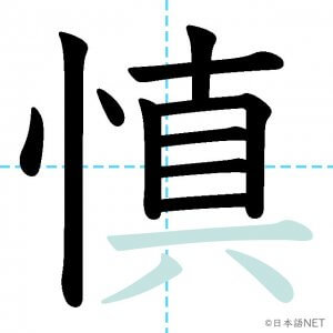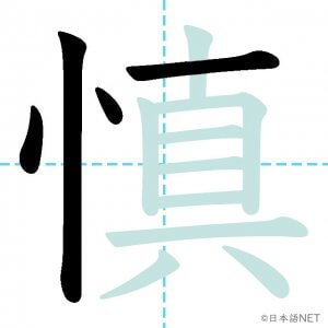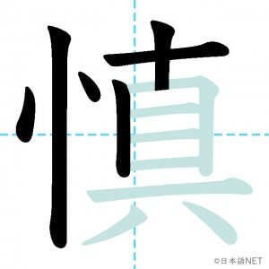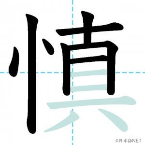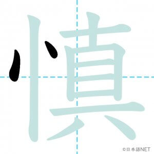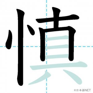N1 漢字漢字【JLPT N1漢字】「慎」の意味・読み方・書き順 2021年10月22日 2021年10月22日 Facebook postはてブLINEPocketFeedlyfa-exclamation-triangle記事内に商品プロモーションが含まれる場合があります目次1 「慎」の漢字について2 「慎」の書き順3 「慎」を含む言葉4 関連書籍「慎」の漢字について読み方音読みしん訓読みつつし-む意味humility / careful / discrete部首心(忄⺗画数13JLPTレベルN1 「慎」の書き順1画目2画目3画目4画目5画目6画目7画目8画目9画目10画目11画目12画目13画目「慎」を含む言葉慎む(つつしむ)慎重(しんちょう)謹慎(きんしん)関連書籍 日本語総まとめ N1 漢字 [英語・ベトナム語版] (「日本語能力試験」対策) Amazon 楽天市場 Yahooショッピング 新完全マスター漢字 日本語能力試験N1 Amazon 楽天市場 Yahooショッピング 日本語を学ぶ外国人のための これで覚える! 漢字字典2500ナツメ社 Amazon 楽天市場 Yahooショッピング Facebook postはてブLINEPocketFeedly