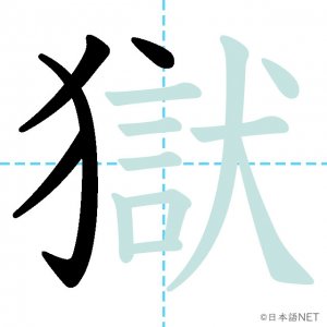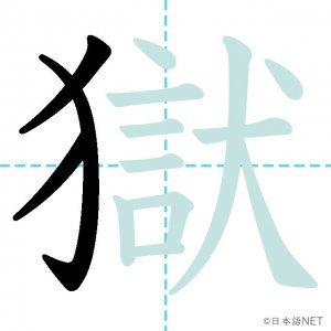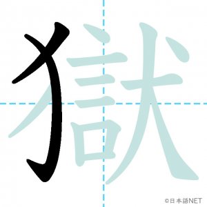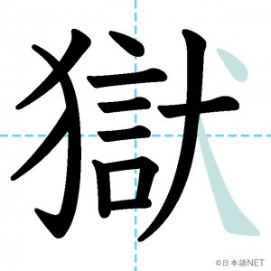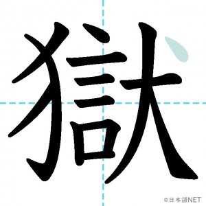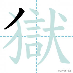 N1 漢字漢字【JLPT N1漢字】「獄」の意味・読み方・書き順 2021年10月24日 2021年10月24日 Facebook postはてブLINEPocketFeedlyfa-exclamation-triangle記事内に商品プロモーションが含まれる場合があります目次1 「獄」の漢字について2 「獄」の書き順3 「獄」を含む言葉4 関連書籍「獄」の漢字について読み方音読みごく訓読み-意味prison / jail部首犬(犭)画数14JLPTレベルN1 「獄」の書き順1画目2画目3画目4画目5画目6画目7画目8画目9画目10画目11画目12画目13画目14画目「獄」を含む言葉地獄(じごく)監獄(かんごく)牢獄(ろうごく)脱獄(だつごく)煉獄(れんごく)関連書籍 日本語総まとめ N1 漢字 [英語・ベトナム語版] (「日本語能力試験」対策) Amazon 楽天市場 Yahooショッピング 新完全マスター漢字 日本語能力試験N1 Amazon 楽天市場 Yahooショッピング 日本語を学ぶ外国人のための これで覚える! 漢字字典2500ナツメ社 Amazon 楽天市場 Yahooショッピング Facebook postはてブLINEPocketFeedly