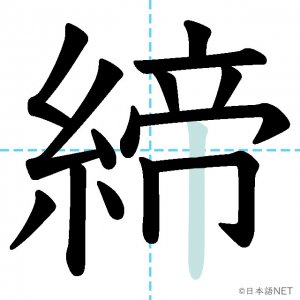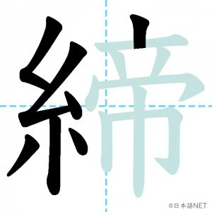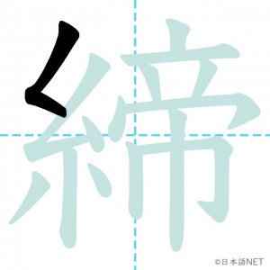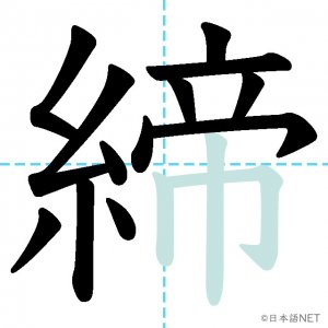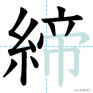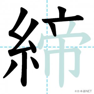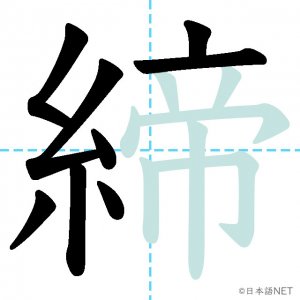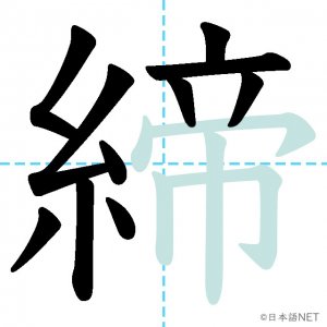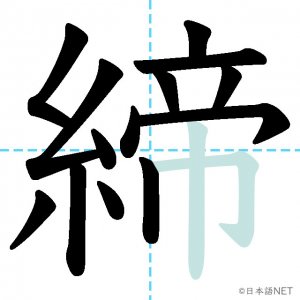 N1 漢字漢字【JLPT N1漢字】「締」の意味・読み方・書き順 2021年10月24日 2021年10月24日 Facebook postはてブLINEPocketFeedlyfa-exclamation-triangle記事内に商品プロモーションが含まれる場合があります目次1 「締」の漢字について2 「締」の書き順3 「締」を含む言葉4 関連書籍「締」の漢字について読み方音読みてい訓読みし-まる し-める意味to tighten / to fasten部首糸画数15JLPTレベルN1 「締」の書き順1画目2画目3画目4画目5画目6画目7画目8画目9画目10画目11画目12画目13画目14画目15画目「締」を含む言葉締め切り(しめきり)戸締り(とじまり)取り締まり(とりしまり)締める(しめる)締結(ていけつ)関連書籍 日本語総まとめ N1 漢字 [英語・ベトナム語版] (「日本語能力試験」対策) Amazon 楽天市場 Yahooショッピング 新完全マスター漢字 日本語能力試験N1 Amazon 楽天市場 Yahooショッピング 日本語を学ぶ外国人のための これで覚える! 漢字字典2500ナツメ社 Amazon 楽天市場 Yahooショッピング Facebook postはてブLINEPocketFeedly