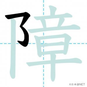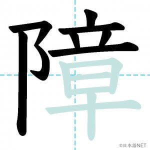 N1 漢字漢字【JLPT N1漢字】「障」の意味・読み方・書き順 2021年10月24日 2021年10月30日 Facebook postはてブLINEPocketFeedlyfa-exclamation-triangle記事内に商品プロモーションが含まれる場合があります目次1 「障」の漢字について2 「障」の書き順3 「障」を含む言葉4 関連書籍「障」の漢字について読み方音読みしょう訓読みさわ-る意味to hinder / to hurt部首阜 (阝)画数14JLPTレベルN1 「障」の書き順1画目2画目3画目4画目5画目6画目7画目8画目9画目10画目11画目12画目13画目14画目「障」を含む言葉障害(しょうがい)支障(ししょう)故障(こしょう)保障(ほしょう)関連書籍 日本語総まとめ N1 漢字 [英語・ベトナム語版] (「日本語能力試験」対策) Amazon 楽天市場 Yahooショッピング 新完全マスター漢字 日本語能力試験N1 Amazon 楽天市場 Yahooショッピング 日本語を学ぶ外国人のための これで覚える! 漢字字典2500ナツメ社 Amazon 楽天市場 Yahooショッピング Facebook postはてブLINEPocketFeedly