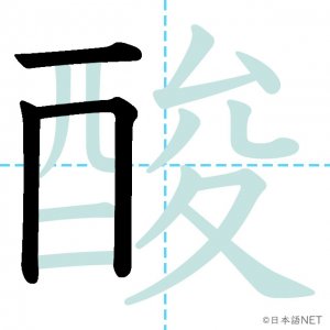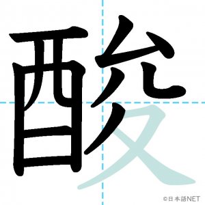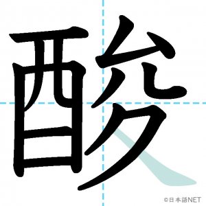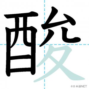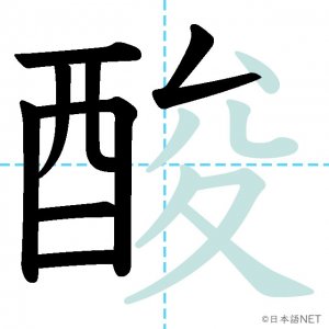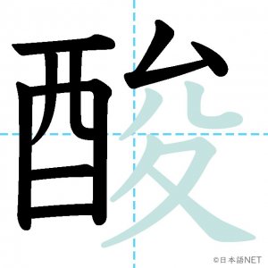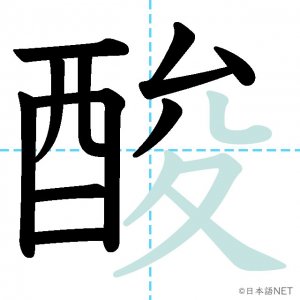 N1 漢字漢字【JLPT N1漢字】「酸」の意味・読み方・書き順 2021年10月26日 2021年10月26日 Facebook postはてブLINEPocketFeedlyfa-exclamation-triangle記事内に商品プロモーションが含まれる場合があります目次1 「酸」の漢字について2 「酸」の書き順3 「酸」を含む言葉4 関連書籍「酸」の漢字について読み方音読みさん訓読みす-い意味acid / sour部首酉画数14JLPTレベルN1 「酸」の書き順1画目2画目3画目4画目5画目6画目7画目8画目9画目10画目11画目12画目13画目14画目「酸」を含む言葉酸素(さんそ)乳酸(にゅうさん)塩酸(えんさん)酢酸(さくさん)酸化(さんか)酸性(さんせい)関連書籍 日本語総まとめ N1 漢字 [英語・ベトナム語版] (「日本語能力試験」対策) Amazon 楽天市場 Yahooショッピング 新完全マスター漢字 日本語能力試験N1 Amazon 楽天市場 Yahooショッピング 日本語を学ぶ外国人のための これで覚える! 漢字字典2500ナツメ社 Amazon 楽天市場 Yahooショッピング Facebook postはてブLINEPocketFeedly
