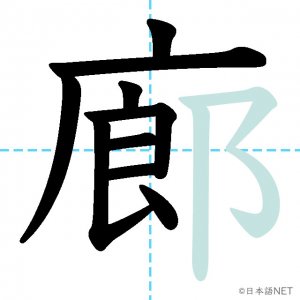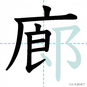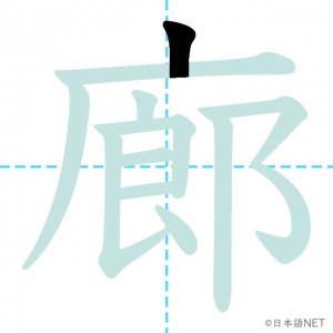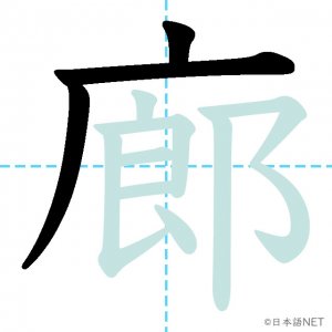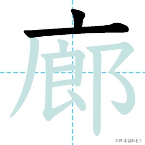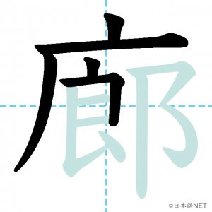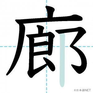 N1 漢字漢字【JLPT N1漢字】「廊」の意味・読み方・書き順 2021年10月29日 2021年10月29日 Facebook postはてブLINEPocketFeedlyfa-exclamation-triangle記事内に商品プロモーションが含まれる場合があります目次1 「廊」の漢字について2 「廊」の書き順3 「廊」を含む言葉4 関連書籍「廊」の漢字について読み方音読みろう訓読み-意味corridor部首广画数12JLPTレベルN1 「廊」の書き順1画目2画目3画目4画目5画目6画目7画目8画目9画目10画目11画目12画目「廊」を含む言葉廊下(ろうか)関連書籍 日本語総まとめ N1 漢字 [英語・ベトナム語版] (「日本語能力試験」対策) Amazon 楽天市場 Yahooショッピング 新完全マスター漢字 日本語能力試験N1 Amazon 楽天市場 Yahooショッピング 日本語を学ぶ外国人のための これで覚える! 漢字字典2500ナツメ社 Amazon 楽天市場 Yahooショッピング Facebook postはてブLINEPocketFeedly