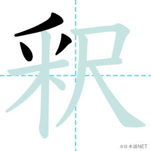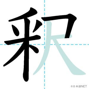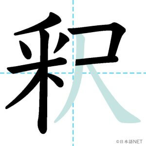 N1 漢字漢字【JLPT N1漢字】「釈」の意味・読み方・書き順 2021年11月3日 2021年11月3日 Facebook postはてブLINEPocketFeedlyfa-exclamation-triangle記事内に商品プロモーションが含まれる場合があります目次1 「釈」の漢字について2 「釈」の書き順3 「釈」を含む言葉4 関連書籍「釈」の漢字について読み方音読みしゃく訓読み-意味explanation部首采画数11JLPTレベルN1 「釈」の書き順1画目2画目3画目4画目5画目6画目7画目8画目9画目10画目11画目「釈」を含む言葉解釈(かいしゃく)会釈(えしゃく)保釈(ほしゃく)釈明(しゃくめい)関連書籍 日本語総まとめ N1 漢字 [英語・ベトナム語版] (「日本語能力試験」対策) Amazon 楽天市場 Yahooショッピング 新完全マスター漢字 日本語能力試験N1 Amazon 楽天市場 Yahooショッピング 日本語を学ぶ外国人のための これで覚える! 漢字字典2500ナツメ社 Amazon 楽天市場 Yahooショッピング Facebook postはてブLINEPocketFeedly