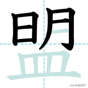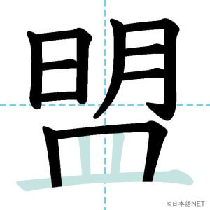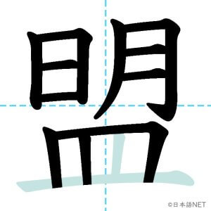 N1 漢字漢字【JLPT N1漢字】「盟」の意味・読み方・書き順 2021年11月4日 2021年11月4日 Facebook postはてブLINEPocketFeedlyfa-exclamation-triangle記事内に商品プロモーションが含まれる場合があります目次1 「盟」の漢字について2 「盟」の書き順3 「盟」を含む言葉4 関連書籍「盟」の漢字について読み方音読みめい訓読み-意味alliance部首皿画数13JLPTレベルN1 「盟」の書き順1画目2画目3画目4画目5画目6画目7画目8画目9画目10画目11画目12画目13画目「盟」を含む言葉同盟(どうめい)連盟(れんめい)加盟(かめい)関連書籍 日本語総まとめ N1 漢字 [英語・ベトナム語版] (「日本語能力試験」対策) Amazon 楽天市場 Yahooショッピング 新完全マスター漢字 日本語能力試験N1 Amazon 楽天市場 Yahooショッピング 日本語を学ぶ外国人のための これで覚える! 漢字字典2500ナツメ社 Amazon 楽天市場 Yahooショッピング Facebook postはてブLINEPocketFeedly