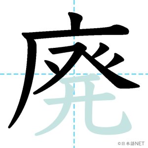 N1 漢字漢字【JLPT N1漢字】「廃」の意味・読み方・書き順 2021年11月5日 2021年11月5日 Facebook postはてブLINEPocketFeedlyfa-exclamation-triangle記事内に商品プロモーションが含まれる場合があります目次1 「廃」の漢字について2 「廃」の書き順3 「廃」を含む言葉4 関連書籍「廃」の漢字について読み方音読みはい訓読みすた-れる すた-る意味to abolish / to abandon部首广画数12JLPTレベルN1 「廃」の書き順1画目2画目3画目4画目5画目6画目7画目8画目9画目10画目11画目12画目「廃」を含む言葉廃棄(はいき)廃止(はいし)荒廃(こうはい)廃校(はいこう)廃坑(はいこう)関連書籍 日本語総まとめ N1 漢字 [英語・ベトナム語版] (「日本語能力試験」対策) Amazon 楽天市場 Yahooショッピング 新完全マスター漢字 日本語能力試験N1 Amazon 楽天市場 Yahooショッピング 日本語を学ぶ外国人のための これで覚える! 漢字字典2500ナツメ社 Amazon 楽天市場 Yahooショッピング Facebook postはてブLINEPocketFeedly