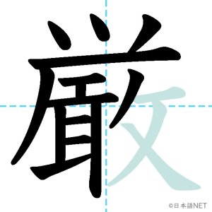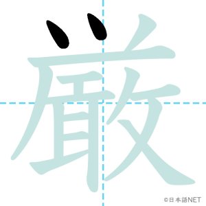 N1 漢字漢字【JLPT N1漢字】「厳」の意味・読み方・書き順 2021年11月8日 2021年11月8日 Facebook postはてブLINEPocketFeedlyfa-exclamation-triangle記事内に商品プロモーションが含まれる場合があります目次1 「厳」の漢字について2 「厳」の書き順3 「厳」を含む言葉4 関連書籍「厳」の漢字について読み方音読みげん ごん訓読みきび-しい おごそ-か意味strict / severe部首ツ画数17JLPTレベルN1 「厳」の書き順1画目2画目3画目4画目5画目6画目7画目8画目9画目10画目11画目12画目13画目14画目15画目16画目17画目「厳」を含む言葉厳しい(きびしい)厳格(げんかく)厳密(げんみつ)厳重(げんじゅう)威厳(いげん)尊厳(そんげん)厳禁(げんきん)関連書籍 日本語総まとめ N1 漢字 [英語・ベトナム語版] (「日本語能力試験」対策) Amazon 楽天市場 Yahooショッピング 新完全マスター漢字 日本語能力試験N1 Amazon 楽天市場 Yahooショッピング 日本語を学ぶ外国人のための これで覚える! 漢字字典2500ナツメ社 Amazon 楽天市場 Yahooショッピング Facebook postはてブLINEPocketFeedly