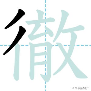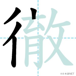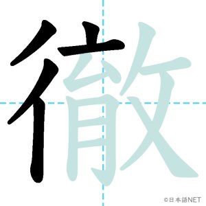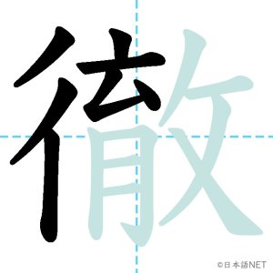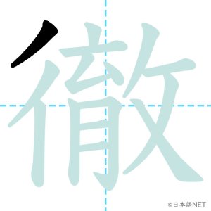 N1 漢字漢字【JLPT N1漢字】「徹」の意味・読み方・書き順 2021年11月9日 2021年11月9日 Facebook postはてブLINEPocketFeedlyfa-exclamation-triangle記事内に商品プロモーションが含まれる場合があります目次1 「徹」の漢字について2 「徹」の書き順3 「徹」を含む言葉4 関連書籍「徹」の漢字について読み方音読みてつ訓読み-意味to penetrate部首彳画数15JLPTレベルN1 「徹」の書き順1画目2画目3画目4画目5画目6画目7画目8画目9画目10画目11画目12画目13画目14画目15画目「徹」を含む言葉徹夜(てつや)徹底(てってい)徹する(てっする)貫徹(かんてつ)関連書籍 日本語総まとめ N1 漢字 [英語・ベトナム語版] (「日本語能力試験」対策) Amazon 楽天市場 Yahooショッピング 新完全マスター漢字 日本語能力試験N1 Amazon 楽天市場 Yahooショッピング 日本語を学ぶ外国人のための これで覚える! 漢字字典2500ナツメ社 Amazon 楽天市場 Yahooショッピング Facebook postはてブLINEPocketFeedly