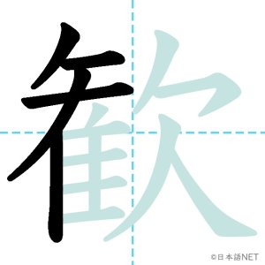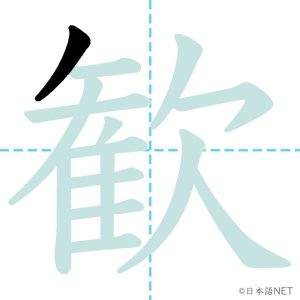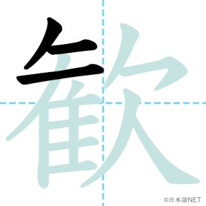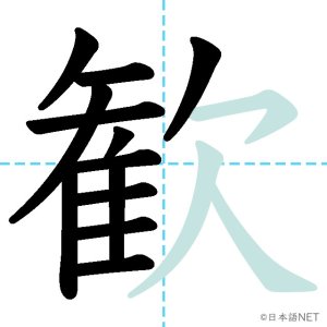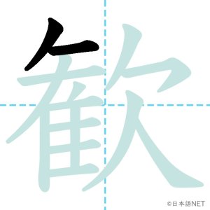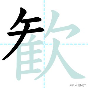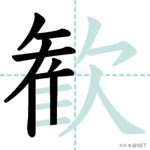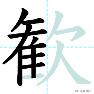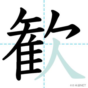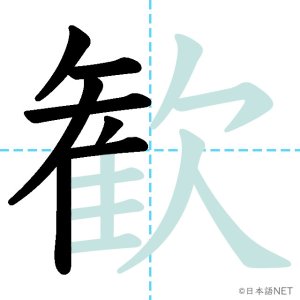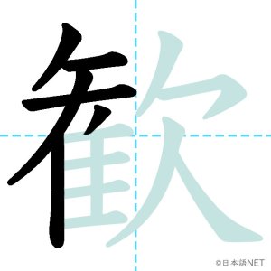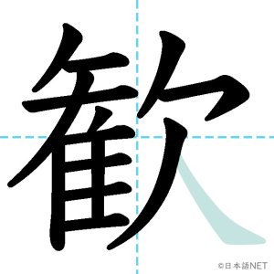 N1 漢字漢字【JLPT N1漢字】「歓」の意味・読み方・書き順 2021年11月10日 2021年11月10日 Facebook postはてブLINEPocketFeedlyfa-exclamation-triangle記事内に商品プロモーションが含まれる場合があります目次1 「歓」の漢字について2 「歓」の書き順3 「歓」を含む言葉4 関連書籍「歓」の漢字について読み方音読みかん訓読み-意味delight / joy部首欠画数15JLPTレベルN1 「歓」の書き順1画目2画目3画目4画目5画目6画目7画目8画目9画目10画目11画目12画目13画目14画目15画目「歓」を含む言葉歓迎(かんげい)歓声(かんせい)歓喜(かんき)関連書籍 日本語総まとめ N1 漢字 [英語・ベトナム語版] (「日本語能力試験」対策) Amazon 楽天市場 Yahooショッピング 新完全マスター漢字 日本語能力試験N1 Amazon 楽天市場 Yahooショッピング 日本語を学ぶ外国人のための これで覚える! 漢字字典2500ナツメ社 Amazon 楽天市場 Yahooショッピング Facebook postはてブLINEPocketFeedly