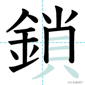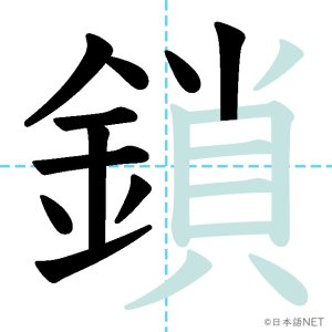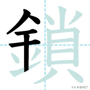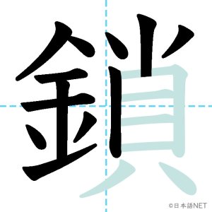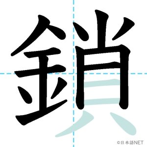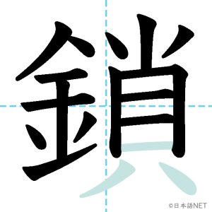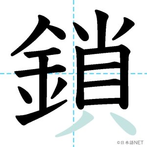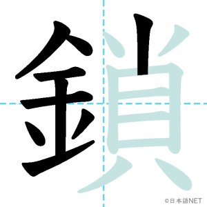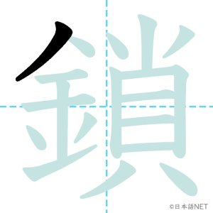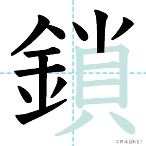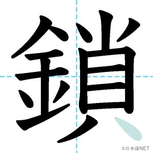 N1 漢字漢字【JLPT N1漢字】「鎖」の意味・読み方・書き順 2021年11月10日 2021年11月10日 Facebook postはてブLINEPocketFeedlyfa-exclamation-triangle記事内に商品プロモーションが含まれる場合があります目次1 「鎖」の漢字について2 「鎖」の書き順3 「鎖」を含む言葉4 関連書籍「鎖」の漢字について読み方音読みさ訓読みくさり意味chain部首金画数18JLPTレベルN1 「鎖」の書き順1画目2画目3画目4画目5画目6画目7画目8画目9画目10画目11画目12画目13画目14画目15画目16画目17画目18画目「鎖」を含む言葉鎖(くさり)封鎖(ふうさ)閉鎖(へいさ)鎖国(さこく)連鎖(れんさ)関連書籍 日本語総まとめ N1 漢字 [英語・ベトナム語版] (「日本語能力試験」対策) Amazon 楽天市場 Yahooショッピング 新完全マスター漢字 日本語能力試験N1 Amazon 楽天市場 Yahooショッピング 日本語を学ぶ外国人のための これで覚える! 漢字字典2500ナツメ社 Amazon 楽天市場 Yahooショッピング Facebook postはてブLINEPocketFeedly