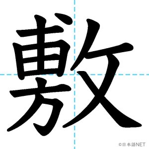 N1 漢字漢字【JLPT N1漢字】「敷」の意味・読み方・書き順 2021年11月17日 2021年11月17日 Facebook postはてブLINEPocketFeedlyfa-exclamation-triangle記事内に商品プロモーションが含まれる場合があります目次1 「敷」の漢字について2 「敷」の書き順3 「敷」を含む言葉4 関連書籍「敷」の漢字について読み方音読みふ訓読みし-く意味to spread / to pave部首攴(攵)画数15JLPTレベルN1 「敷」の書き順1画目 2画目3画目4画目5画目6画目7画目8画目9画目10画目11画目12画目13画目14画目15画目「敷」を含む言葉屋敷(やしき)敷物(しきもの)風呂敷(ふろしき)座敷(ざしき)敷地(しきち)敷居(しきい)敷く(しく)関連書籍 日本語総まとめ N1 漢字 [英語・ベトナム語版] (「日本語能力試験」対策) Amazon 楽天市場 Yahooショッピング 新完全マスター漢字 日本語能力試験N1 Amazon 楽天市場 Yahooショッピング 日本語を学ぶ外国人のための これで覚える! 漢字字典2500ナツメ社 Amazon 楽天市場 Yahooショッピング Facebook postはてブLINEPocketFeedly