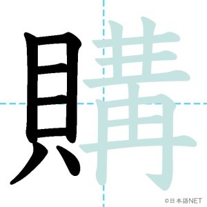 N1 漢字漢字【JLPT N1漢字】「購」の意味・読み方・書き順 2021年11月23日 2021年11月23日 Facebook postはてブLINEPocketFeedlyfa-exclamation-triangle記事内に商品プロモーションが含まれる場合があります目次1 「購」の漢字について2 「購」の書き順3 「購」を含む言葉4 関連書籍「購」の漢字について読み方音読みこう訓読み-意味to purchase / to buy部首貝画数17JLPTレベルN1 「購」の書き順1画目2画目3画目4画目5画目6画目7画目8画目9画目10画目11画目12画目13画目14画目15画目16画目17画目「購」を含む言葉購入(こうにゅう)購買(こうばい)購読(こうどく)関連書籍 日本語総まとめ N1 漢字 [英語・ベトナム語版] (「日本語能力試験」対策) Amazon 楽天市場 Yahooショッピング 新完全マスター漢字 日本語能力試験N1 Amazon 楽天市場 Yahooショッピング 日本語を学ぶ外国人のための これで覚える! 漢字字典2500ナツメ社 Amazon 楽天市場 Yahooショッピング Facebook postはてブLINEPocketFeedly