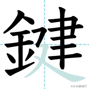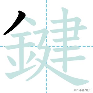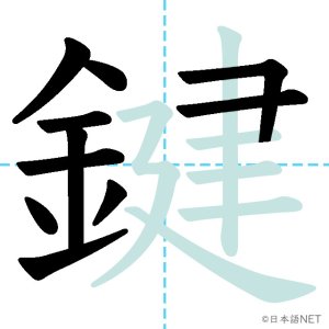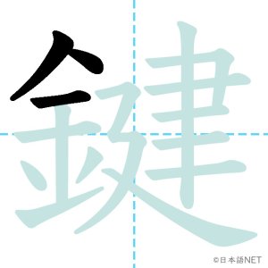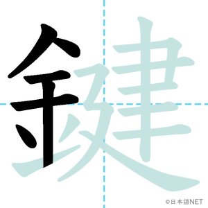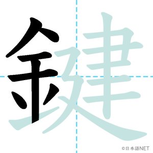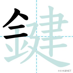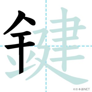 N1 漢字漢字【JLPT N1漢字】「鍵」の意味・読み方・書き順 2021年11月28日 2021年11月28日 Facebook postはてブLINEPocketFeedlyfa-exclamation-triangle記事内に商品プロモーションが含まれる場合があります目次1 「鍵」の漢字について2 「鍵」の書き順3 「鍵」を含む言葉4 関連書籍「鍵」の漢字について読み方音読みけん訓読みかぎ意味key部首金画数17JLPTレベルN1 「鍵」の書き順1画目2画目3画目4画目5画目6画目7画目8画目9画目10画目11画目12画目13画目14画目15画目16画目17画目「鍵」を含む言葉鍵(かぎ)合鍵(あいがき)鍵盤(けんばん)関連書籍 日本語総まとめ N1 漢字 [英語・ベトナム語版] (「日本語能力試験」対策) Amazon 楽天市場 Yahooショッピング 新完全マスター漢字 日本語能力試験N1 Amazon 楽天市場 Yahooショッピング 日本語を学ぶ外国人のための これで覚える! 漢字字典2500ナツメ社 Amazon 楽天市場 Yahooショッピング Facebook postはてブLINEPocketFeedly