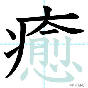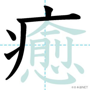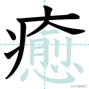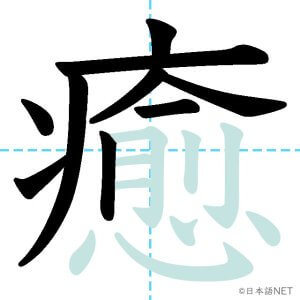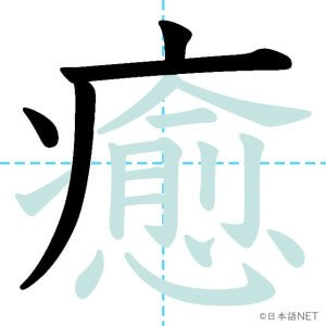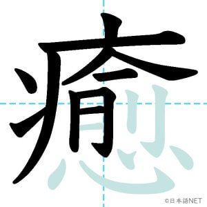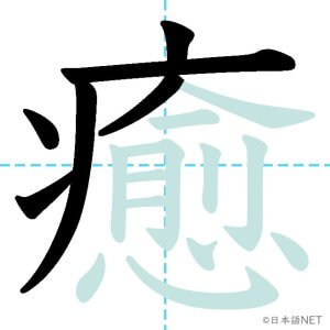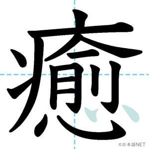 N1 漢字漢字【JLPT N1漢字】「癒」の意味・読み方・書き順 2021年12月4日 2021年12月4日 Facebook postはてブLINEPocketFeedlyfa-exclamation-triangle記事内に商品プロモーションが含まれる場合があります目次1 「癒」の漢字について2 「癒」の書き順3 「癒」を含む言葉4 関連書籍「癒」の漢字について読み方音読みゆ訓読みい-やす い-える意味to heal / to cure部首疒画数18JLPTレベルN1 「癒」の書き順1画目2画目3画目4画目5画目6画目7画目8画目9画目10画目11画目12画目13画目14画目15画目16画目17画目18画目「癒」を含む言葉癒す(いやす)治癒(ちゆ)癒着(ゆちゃく)関連書籍 日本語総まとめ N1 漢字 [英語・ベトナム語版] (「日本語能力試験」対策) Amazon 楽天市場 Yahooショッピング 新完全マスター漢字 日本語能力試験N1 Amazon 楽天市場 Yahooショッピング 日本語を学ぶ外国人のための これで覚える! 漢字字典2500ナツメ社 Amazon 楽天市場 Yahooショッピング Facebook postはてブLINEPocketFeedly