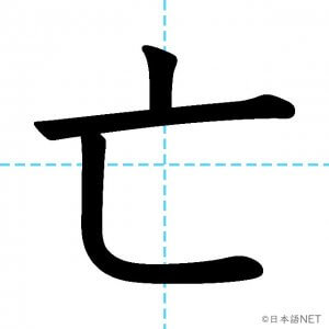 N3 漢字漢字【JLPT N3漢字】「亡」の意味・読み方・書き順 2020年9月9日 2020年9月9日 Facebook postはてブLINEPocketFeedlyfa-exclamation-triangle記事内に商品プロモーションが含まれる場合があります目次1 「亡」の漢字について2 「亡」の書き順3 「亡」を含む言葉4 関連書籍「亡」の漢字について読み方音読みぼう もう訓読みな-い意味deceased / dying部首亠画数3JLPTレベルN3 「亡」の書き順1画目2画目3画目「亡」を含む言葉亡くなる(なくなる)死亡(しぼう)逃亡(とうぼう)亡命(ぼうめい)関連書籍 新完全マスター漢字 日本語能力試験N3 Amazon 楽天市場 Yahooショッピング 日本語総まとめ N3 漢字 (「日本語能力試験」対策) Nihongo Soumatome N3 Kanji Kindle Amazon 楽天市場 Yahooショッピング 日本語を学ぶ外国人のための これで覚える! 漢字字典2500ナツメ社 Amazon 楽天市場 Yahooショッピング Facebook postはてブLINEPocketFeedly